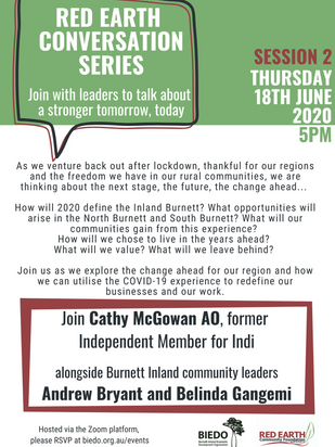 As we come out of lockdown, Red Earth Community Foundation (RECF) and Burnett Inland Economic Development Organisation (BIEDO) are teaming up to host a series of